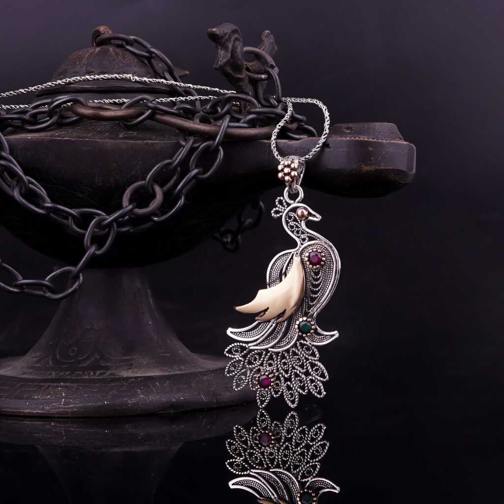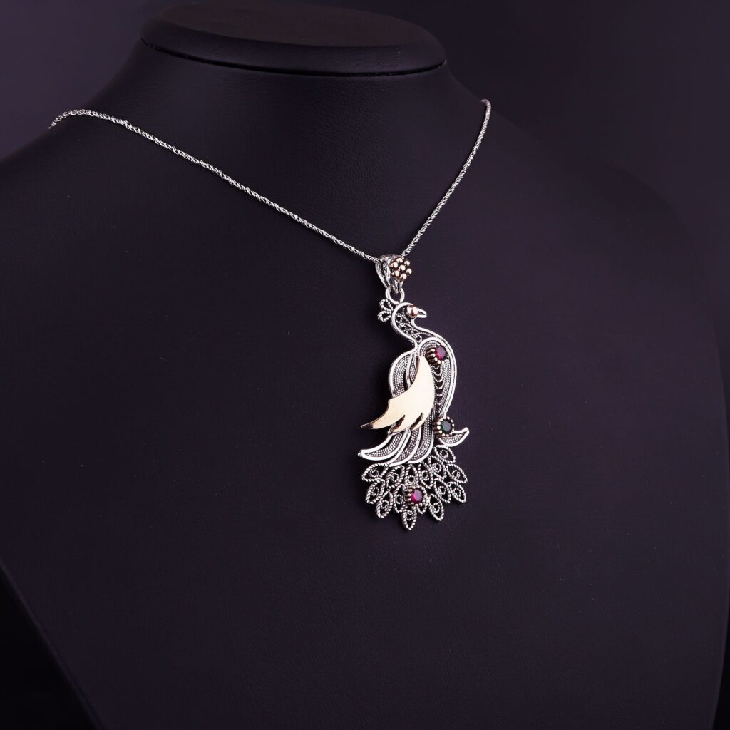 Filigree Peacock Necklace is a unique piece and exquisite example of ancient filigree art. The bearer of Filigree Peacock Necklace would get many compliments with the uniqueness and elegance of it. It definitely draws so much attention than regular jewelry models and complete your stylish look.